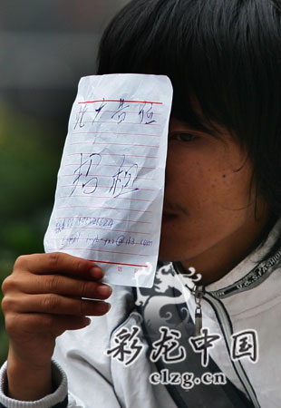 他先是舉著標(biāo)語站到了金碧購物廣場門前,引來不少人圍觀,因廣場工作人員干涉,他又不得不“轉(zhuǎn)戰(zhàn)”到柏聯(lián)廣場。后來,再次被工作人員趕開。兩個小時里,圍觀的市民很多,但沒有一個真正上前洽談。