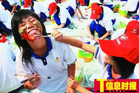 昨日上午,由廣州市委宣傳部、市教育局、團(tuán)市委主辦的2007年廣州市成人宣誓活動隆重舉行。全市15萬名18歲青年參加了宣誓。在主會場,1800名18歲青年以涂鴉的形式完成了“成年禮”。