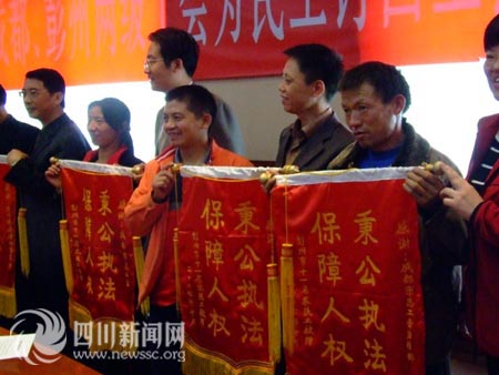 通過(guò)成都市總工會(huì)和彭州市總工會(huì)等組成的維權(quán)小組跨省維權(quán),曾在山西孝義市身陷黑磚窯事件的十一名四川彭州民工終于得到了期盼三年的血汗錢(qián)。10月22日下午,周世和和陳移松等民工代表從工會(huì)工作人員手中接過(guò)自己的血汗錢(qián)時(shí)眼里閃動(dòng)著淚花。