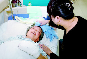 據(jù)自治區(qū)中醫(yī)院骨三科為楊老太治病的王醫(yī)生介紹,老人是在23日17時左右送進醫(yī)院的,當時意識已不清楚,經(jīng)過檢查及救治,確定老人腰椎三處壓縮性骨折、肋骨三處骨折、臉部皮外傷,最重的要數(shù)左手的撕脫傷,“最佳治療時間是在受傷8小時之內(nèi),可老人送來時已錯過了,加上老人手部供血不好,不光要植皮,可能還會影響到左手正常拿東西!蓖踽t(yī)生說。