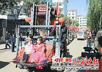 隨后,車隊慢慢地向飯店開去。面對記者的采訪,新娘簡單又質(zhì)樸地說:"我知道我們現(xiàn)在經(jīng)濟條件不太好,我也不要求什么,不管他用什么車來接我,我都會嫁給他的。"(記者孫亮)