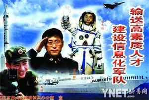 “今年在媒體上刊登的征兵公益廣告總計四次,貫穿著整個征兵宣傳期。”市征兵辦有關(guān)工作人員說,“征兵公益廣告每次宣傳的主題和內(nèi)容各不一樣,比如第一次的畫面凸顯身著2007式新軍服的三軍將士,讓大家了解人民解放軍的組成;第二次的畫面中以雷鋒、楊業(yè)功、李中華為主體,加上隱在背景中的黃繼光,弘揚(yáng)的是革命英雄主義;航天英雄楊利偉、大學(xué)教授方永剛、北大學(xué)子兵高明是第三次廣告的主體,以吸引高素質(zhì)人才!
