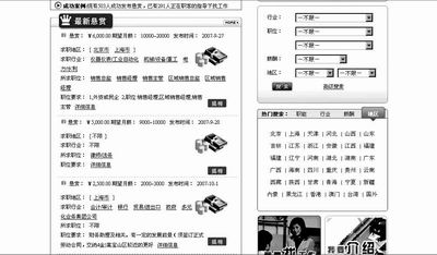 “現(xiàn)有503人成功發(fā)布懸賞,已有291人正在職客的指導下找工作!贝蜷_一家域名為http:///的職客網(wǎng),不斷更新的數(shù)字赫然入目。眾多職客網(wǎng)上,求職“懸賞令”通常被當作“招牌”掛在網(wǎng)站的首頁。
