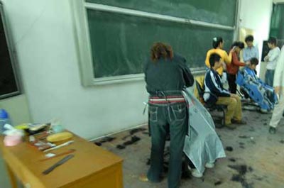 記者來(lái)到該校多媒體教室時(shí),看見(jiàn)理發(fā)師正在給學(xué)生理發(fā),幾名男生坐在椅子上扭動(dòng)著身體,露出極不情愿的表情。一會(huì)兒,幾名男生陸續(xù)剪好頭發(fā),每人交了3塊錢(qián)走出教室。