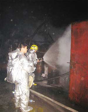 此時(shí),遠(yuǎn)處天空不時(shí)騰起陣陣黑煙。隨著現(xiàn)場(chǎng)的臨近,記者對(duì)那位市民的告誡體會(huì)越深,空氣中的臭味愈發(fā)濃烈。“就是那個(gè)廢棄物處理站里失火了,但你不能進(jìn)去,我們?cè)诶锩鏈缁鸬南绬T都戴著空氣呼吸器的。”一位消防員攔住了記者。就見(jiàn)處理站里不時(shí)躥出火苗,但在10多名消防員的奮力撲救下,漸漸勢(shì)弱。由于此處沒(méi)有消防栓,也沒(méi)有足夠的水源,數(shù)輛消防車用完水后,趕緊又離開(kāi)現(xiàn)場(chǎng)補(bǔ)充水。凌晨3點(diǎn)半,火勢(shì)終于被控制住,記者捂住鼻子試圖進(jìn)入站里查看情況,但剛邁入大門,刺激性氣體讓人直流眼淚,呼吸也更加困難。