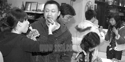 “告別單身,不做光棍!”昨日下午,由本報(bào)(注:華西都市報(bào))城區(qū)論壇、四川在線(xiàn)網(wǎng)友發(fā)帖組織的單身派對(duì)上,單身男女們將代表光棍節(jié)的四根油條“狠狠”吃下了肚,以誓“脫光”(脫離光棍隊(duì)伍)的決心。