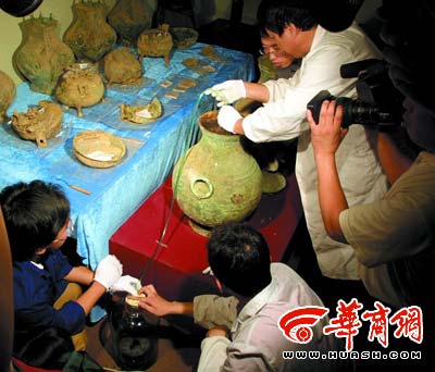 省市考古專家對(duì)現(xiàn)場進(jìn)行了勘察。經(jīng)多數(shù)專家初步斷定,壺內(nèi)液體是罕見的“戰(zhàn)國美酒”,考古人員隨即將液體直接送往北京鑒定。