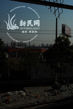 王先生當(dāng)時(shí)從浦三路888弄附近過馬路到昌里東路,聽到爆炸聲后,他看到一個(gè)穿著藍(lán)衣服的人,和鋪天蓋地的碎石一起,從空中徑直飛了過來,最后落到旁邊工地上一個(gè)打樁機(jī)旁。工地上早上剛剛用打樁機(jī)打完一個(gè)洞的農(nóng)民工小楊說:“當(dāng)時(shí)我們抱著頭嚇得往旁邊逃。等我們?cè)倩貋頃r(shí),居然看到打樁孔里躺著一個(gè)人,都是血,嚇人,不敢看!