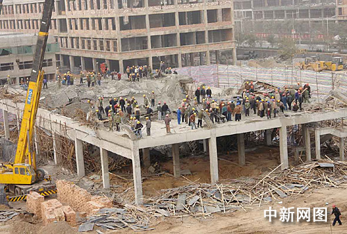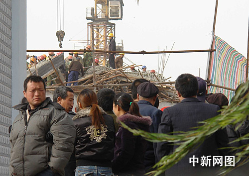從周邊的居民處了解到,該車站由浙江的一家工程公司負(fù)責(zé)承建,建成后將把現(xiàn)在的侯馬西站搬遷過來,以成為侯馬北方輕工城的配套設(shè)施。昨天下午三時政府才在這里剪彩搞了典禮活動,活動結(jié)束后施工方就開始給二樓樓頂灌漿,到今天凌晨一時左右,工人正在作業(yè),就出事了。