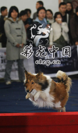 在比賽場(chǎng)不遠(yuǎn)處,還舉辦了狗狗“敏捷秀”,看看哪只狗狗在爬坡、穿洞、跳高等各方面的技能訓(xùn)練最好。由12只狗組成的參賽隊(duì)伍,一會(huì)兒上坡,一會(huì)兒跳高,引來(lái)眾人的喝彩。特別是狗按照指定路線送報(bào)紙、跳舞等才藝表演,讓人大開眼界。