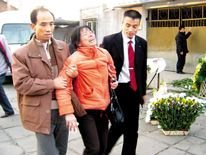 下午4點(diǎn)18分,李氏夫婦在記者的簇?fù)硐聛?lái)到醫(yī)院太平間看女兒的遺體?催^(guò)遺體后,紅著眼圈的李旭光攙著痛哭不止的妻子,一起去見(jiàn)醫(yī)院領(lǐng)導(dǎo)和參與搶救的醫(yī)生。