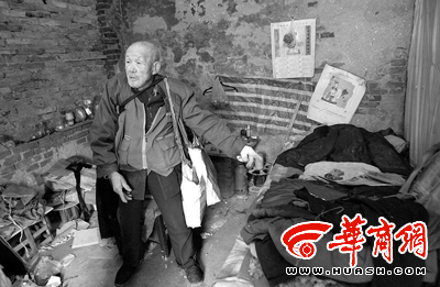 12月8日晚,在西安市后村一間四周被荒草包圍的破屋里,90歲的賣報(bào)老人蘇之敬守著小蜂窩煤爐坐了整整一夜!不是他不想睡覺,而是那張用磚頭壘起的床上,兩床御寒的被子和枕頭剛被人偷了,和被子一起“消失”的還有他靠賣報(bào)辛辛苦苦積攢的3000元錢,那些血汗錢藏在枕頭里。