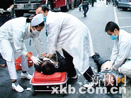 昨晚11時,記者在醫(yī)院看到一名男傷者在搶救室搶救。據(jù)介紹,該傷者事發(fā)時正在咖啡廳2樓,由于咖啡廳濃煙滾滾,傷者吸入過多濃煙,他掙扎著打破咖啡廳中間的大玻璃窗后從樓上跳下,當場昏迷。當晚11時10分,該傷者被送到重癥監(jiān)護室。據(jù)知情人介紹,當時還有一名女士也從窗戶跳下。