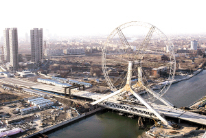 昨天上午,在永樂橋施工現(xiàn)場周圍,即將合龍的永樂橋摩天輪吸引了眾多市民的目光。記者了解到,目前,永樂橋摩天輪的結(jié)構(gòu)安裝已接近尾聲,將于本月18日正式合龍。屆時,氣勢恢弘的“天津之眼”將完全“睜開”,為津城再添一景。