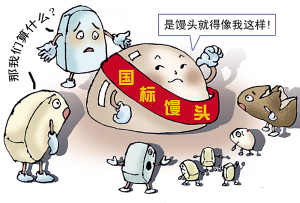 什么叫饅頭?別以為這問題很弱智——最近,可是網(wǎng)上一大熱議話題。饅頭之所以在網(wǎng)上“躥紅”,始于最近有多家媒體稱,國家有關(guān)部門出臺(tái)了“饅頭國標(biāo)”,其中規(guī)定“饅頭必須是圓的”。一份有6437人參加的網(wǎng)上調(diào)查顯示,82.63%的人對(duì)此持異意。