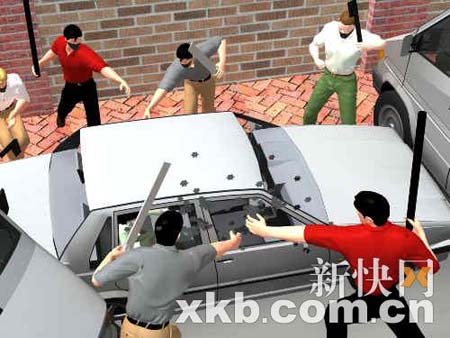 據(jù)自稱在遠(yuǎn)處目擊了事發(fā)經(jīng)過的市民稱,當(dāng)時(shí)前后兩車內(nèi)沖出6名蒙面男子,其中兩人手拿利斧、兩人手持砍刀、兩人拿著木棍。拿斧頭的兩男子對著豐田轎車的輪胎一陣亂劈,將輪胎砍破,拿木棍的男子則對著車窗玻璃猛擊,車窗玻璃被敲碎,另兩名男子拿著砍刀架在了車內(nèi)人員的脖子上。