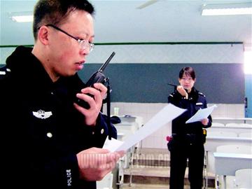 9時至11時,隊員2人一組,左手拿著數(shù)張全英文警情稿,右手拿對講機,用英文進行“實戰(zhàn)”通話。二名英語女教官不停地來回穿梭教室內外,時不時對隊員們發(fā)音不準之處進行糾正和輔導。由于隊員們之間的通話和交流,均是英語,記者如聽“天書”,整個上午只聽懂他們每次說的最后一個單詞——over。