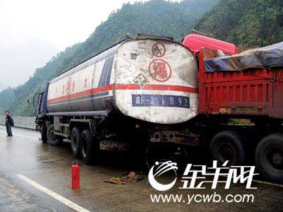 由于罐體車上裝載有35噸化學品三氯丙烷廢料,事發(fā)時罐體被撞擊,罐體尾部卸油管口發(fā)生破裂,液體狀的化學品大量泄漏,罐體車司機夏某等人試圖用棉胎堵住管口未果,隨后,接報趕來的消防隊員用一塊木頭才將管口成功堵住。由于三氯丙烷廢料已有部分流入附近水源,韶關市、乳源縣有關領導會同環(huán)保、衛(wèi)生、安監(jiān)等部門連忙趕赴現(xiàn)場進行污染控制和水質(zhì)凈化,在附近水源設置攔渣壩阻截泄漏的化學品,到昨天上午11時,泄漏化學品被成功攔截。為了避免三氯丙烷廢料威脅周邊群眾安全,鄰近的乳源縣城從上午11時開始全城停止供水,到下午6時確認水源達到飲用標準后,全城才恢復供水。 (記者 彭衛(wèi) 通訊員李軍 賴南坡)