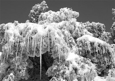 南岳衡山今天迎來了今冬以來的首次冰凍,瑰麗的霧凇奇觀把名山裝扮得分外妖嬈,引得游人流連忘返。