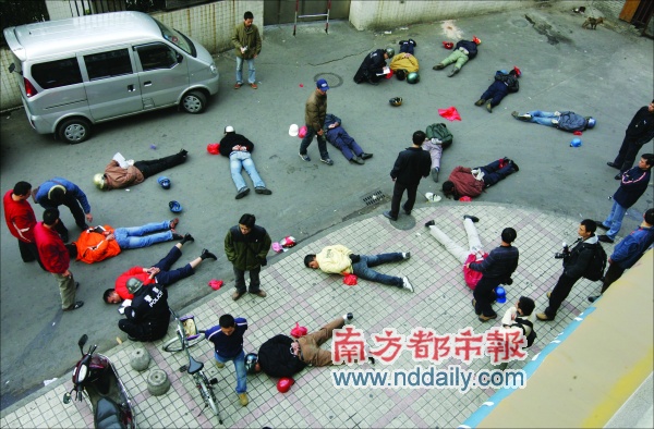 9時(shí)40分,裝扮成乘客的便衣警察從出口緩緩走出,“搭客仔”們跟往常一樣,圍住他們就要作案!安辉S動(dòng),警察!”便衣警察大喝一聲,順勢(shì)制服一個(gè)作案嫌疑人。見到同伙被抓,其他“搭客仔”馬上四處逃竄,車站出口頓時(shí)一片混亂,站內(nèi)乘客都往外跑,外面路口的人卻擁過來看熱鬧。其中一名男子,飛奔中被便衣?lián)涞乖诘,手腳朝天還想反抗,被其他趕上來的便衣合力制服。幾分鐘后,14名涉嫌盜搶的“搭客仔”都趴在了地上。