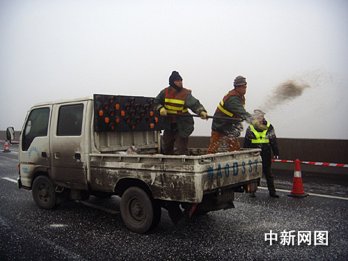 上午8點(diǎn),冰霜再次在京珠北北行41公里處出現(xiàn),京珠交警部門隨即將所有北行車輛緊急截停,惡劣天氣緊急處置預(yù)案再度啟動(dòng)。公路維護(hù)部門對(duì)結(jié)冰橋面多次拋灑工業(yè)鹽實(shí)施溶冰作業(yè),交警和路政部門在結(jié)冰路段擺設(shè)錐筒,減少車道,控制行車速度,并在云巖坡頂實(shí)施間斷放行等交通管制,同時(shí)利用警車壓道和短暫分流等方式疏導(dǎo)現(xiàn)場(chǎng)滯留車輛,緩解交通壓力。最終,長(zhǎng)達(dá)3公里的車龍?jiān)诰嚨膸ьI(lǐng)下安全的駛離了危險(xiǎn)地帶,連續(xù)兩天,沒有重特大交通事故和嚴(yán)重車輛堵塞出現(xiàn)。