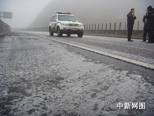 京珠高速湖南境內因結冰交通中斷 北上車輛受阻