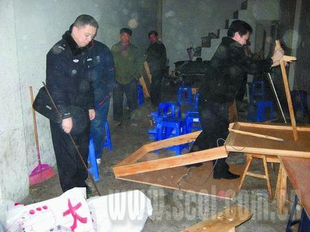 從去年5月起,派出所就經(jīng)常接到群眾舉報,但每次去查賭,都逮不到人。“這些人鬼得很,反偵探能力非常強(qiáng)!本讲粌H逮不到組織賭博的人,就連提供賭場的門面老板都找不到,“這個門面都不知道轉(zhuǎn)了多少次手了,而且也沒有人愿意說實(shí)話!毕群笈芰藥滋於紱]有找到人,警方于是開始采取搜繳賭具的方法,每出一次警,就叫來三輪車把桌椅板凳全部拉到派出所的一個倉庫里。不到10天,倉庫都堆滿了。正是因?yàn)閭}庫都裝滿了,現(xiàn)在才采取砸爛賭具的辦法。
