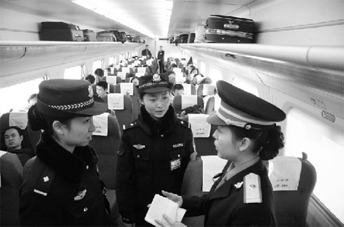 把乘警支隊(duì)的年輕女警全部投入到動(dòng)車組出于什么考慮?對此,李鶴表示,動(dòng)車組有和諧號之稱,對他們的服務(wù)更多地體現(xiàn)在執(zhí)法環(huán)境的改變上。相對于男警,警花們更有親和力。她們的柔情執(zhí)法、微笑服務(wù)更讓人難忘。