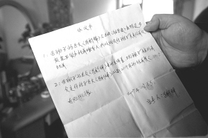 老張說,當(dāng)初馬某找到他時(shí)哭了,說媳婦跑了七八個(gè)月,自己養(yǎng)活不了三個(gè)孩子,要將小女兒送人。他看小馬可憐,才答應(yīng)幫著找個(gè)人家收養(yǎng)。老張還拿出了一份字據(jù):“1、因孩子的生父馬某與生母楊某離婚造成家庭無能力撫養(yǎng)孩子,所以托付給孩子未來的養(yǎng)父撫養(yǎng)。2、因孩子的生父馬某生活條件差,現(xiàn)孩子未來的養(yǎng)父支付給孩子生父馬某以前20個(gè)月的撫養(yǎng)費(fèi)6000元錢。2007年11月5日。”