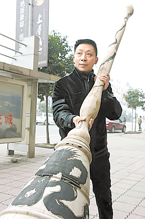 男子欲為巨型毛筆申報(bào)吉尼斯:筆長(zhǎng)3.5米重80斤
