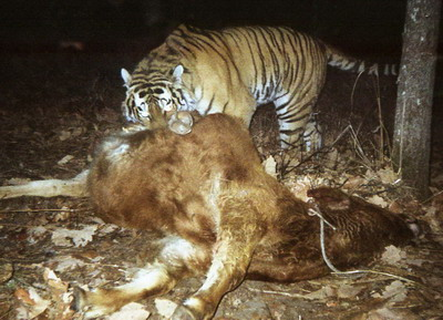 就此事,記者咨詢了從事東北虎保護(hù)工作多年的專家李志興。他說(shuō),一般情況下,東北虎一次只吃一頭牲畜,并且不會(huì)留在一個(gè)并不安全的地方這么久,這有點(diǎn)不符合東北虎的習(xí)性,但也有一種解釋就是東北虎咬死羊后,別的羊的騷動(dòng)影響了它進(jìn)食的興致,所以它一怒之下就把騷擾它的羊都咬死、嚇蒙,以換來(lái)就餐環(huán)境的安靜。