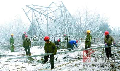 由于受強(qiáng)冷空氣影響,連日來,昭通大部分地區(qū)持續(xù)普降凍雨、大雪,致使昭通電網(wǎng)遭遇10年不遇的覆冰自然災(zāi)害,造成昭通大面積停電,并嚴(yán)重威脅著內(nèi)昆線鐵路運(yùn)行和溪洛渡電站施工用電。目前,威信、鎮(zhèn)雄、鹽津3縣已經(jīng)與云南電網(wǎng)脫離,孤網(wǎng)運(yùn)行;鹽津紅原電石廠、水富金明化工廠已被迫停產(chǎn)。