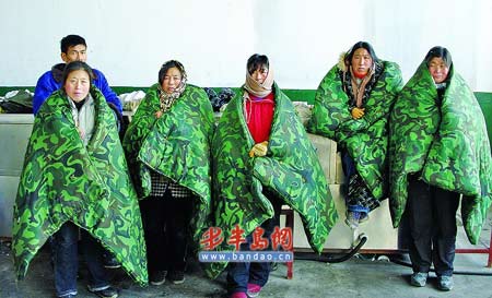 山東青島30多名欠薪農民工身裹棉被討薪(圖)