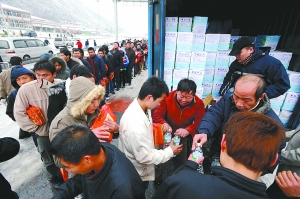 昨日,京珠高速公路破除近20公里冰面,廣東韶關(guān)仍有2000多輛汽車1.6萬人滯留,相關(guān)部門正在向?yàn)?zāi)民發(fā)放食物。龍成通 攝