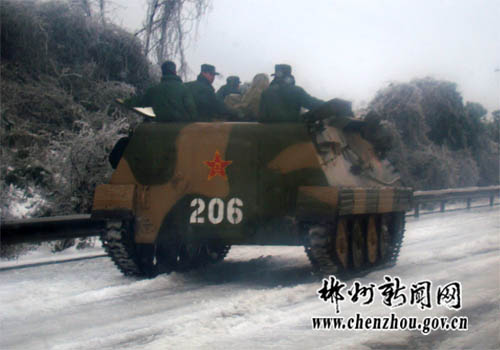 1月28日,剛剛從長沙開完兩會返郴的市委副書記、市長戴道晉馬不停蹄地趕到京珠高速,看望受困人員,并現(xiàn)場指揮交通疏導(dǎo)和救援行動。在京珠高速良田服務(wù)區(qū),戴道晉召開現(xiàn)場辦公會,他要求負(fù)責(zé)交通疏導(dǎo)的人員一定要堅守職責(zé),要在最短的時間內(nèi)確保被困在高速路上的人員及時疏散。同時,湖南省郴州軍分區(qū)動用裝甲車碾冰。