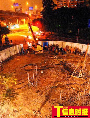 廣州地鐵5號線工地再次出現(xiàn)小范圍地陷(圖)