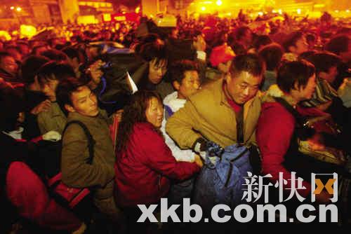 昨日上午,近20萬(wàn)乘客正在各段阻隔帶前翹首等待,不少人都試圖擠向最前面的入口,人疊人、肩靠肩、背貼背。記者看到,無(wú)數(shù)的頭不斷地涌向車(chē)站廣場(chǎng)東西入口。大批警察、武警為分薄人群,減少因擁擠造成的傷亡,與解放軍戰(zhàn)士圍成一條長(zhǎng)達(dá)十幾米的人墻,嚴(yán)防人群過(guò)度擠壓。