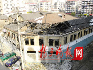 據(jù)離遺址僅一街之隔的一位賣水產(chǎn)的王勇先生反映,大火是在初一零點二十分開始的,大火燒得相當厲害,由于該處建筑已經(jīng)封存,趕來的三輛消防車只進來了兩輛。一個多小時后大火才被撲滅。