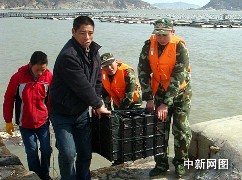 持續(xù)寒冷的天氣連魚也受不了,春節(jié)過后南麂島網(wǎng)箱里的養(yǎng)殖魚開始陸續(xù)出現(xiàn)凍死現(xiàn)象,魚排上漂浮著一條條被凍死的魚兒。災(zāi)情發(fā)生后,溫州邊防支隊南麂邊防派出所迅速組織官兵幫助漁民群眾清理打撈死魚,并及時將未凍死的魚轉(zhuǎn)移到溫室中進行養(yǎng)殖,盡量降低災(zāi)害帶來的損失。