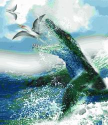 路透社說,科學界迄今發(fā)現(xiàn)的體型比上龍大的海洋食肉動物是魚龍。根據(jù)找到的魚龍化石推測,魚龍可長到23米。魚龍生活在2.1億年前,形似海豚。