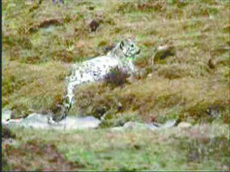 “我最后悔的是自己太激動了,手在抖,所以效果一點也不好。”記者昨日聯(lián)系到拍攝者黃勇,他告訴記者,2007年10月8日,他作為甘孜州石渠縣農(nóng)林局副局長,正好在真達鄉(xiāng)下鄉(xiāng)。上午10時,護林員牛林(藏語音譯)突然沖進辦公室,語無倫次地報告說:“煞!煞(藏語雪豹名)……”原來,在真達鄉(xiāng)普馬村然所通(音譯,是當?shù)夭孛竦倪h牧點,“通”在藏語里意為大壩、寬闊的谷地),連續(xù)幾天都有一只雪豹出沒。黃勇聽后十分興奮,吃過午飯,立即開車前往一探究竟,“有兩個喇嘛隨行,他們帶了一個家用DV,我?guī)Я艘粋普通的數(shù)碼相機!