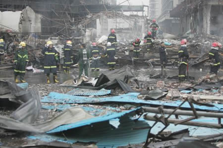 在爆炸點(diǎn)附近,2007年9月24日,廣州開發(fā)區(qū)東區(qū)107國道左側(cè)東興市場對面,一間存有大量化學(xué)品的貨運(yùn)倉庫油罐失火,10分鐘連爆7次,燒了近6小時(shí),大火殃及周邊數(shù)家企業(yè),黑煙綿延幾公里。消防部門先后出動(dòng)34輛消防車,疏散周邊群眾460多人,耗費(fèi)近6小時(shí)將明火撲滅。著火倉庫過火面積約500多平方米,所幸無人員傷亡。(趙佳月 郭小戈 張林 陳志鴻)