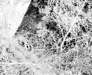 記者昨日幾經(jīng)輾轉(zhuǎn),目睹了吳華當(dāng)時(shí)所拍攝的錄像帶,出現(xiàn)“華南虎”的鏡頭共19秒,錄像中的大型貓科動(dòng)物與年畫中的華南虎十分相似。