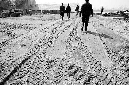 用來(lái)生產(chǎn)產(chǎn)品的原料在地上堆積了厚厚的一層