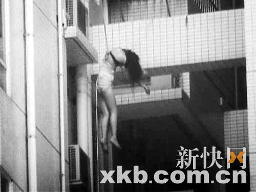本月6日上午7時(shí),東風(fēng)東路東風(fēng)廣場(chǎng)內(nèi)的清潔公司蕭姓女工第一個(gè)目睹了懸掛在該樓橫梁上的女尸。據(jù)當(dāng)時(shí)媒體公布的圖片,死者身上半裸,除了內(nèi)衣內(nèi)褲外再?zèng)]有穿其他衣物,更為恐怖的是,其尸體竟然懸掛在該廣場(chǎng)麗豪閣T7棟12樓和13樓之間。