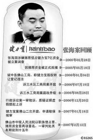 去年2月12日,佛山中院對前健力寶總裁張海職務侵占、挪用資金一案作出一審判決。該院認為,張海利用職務之便,侵占健力寶集團資金人民幣12074.824208萬元;挪用健力寶集團資金人民幣8644.678685萬元,據此判處張海有期徒刑十五年。判決后,張海馬上表示不服上訴。事隔一年零兩個月,該案的二審將在今天正式開庭。出于安全等原因,省高院借用了佛山中院的法庭審理案件。