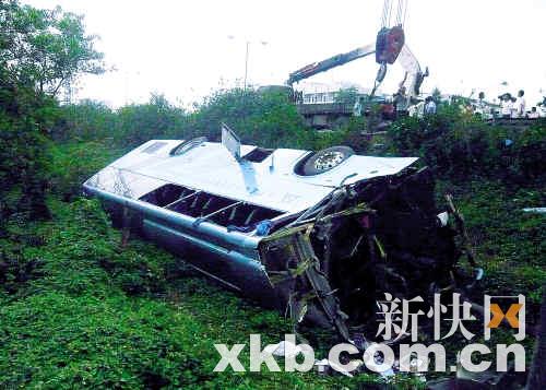 昨日上午,一輛粵港直通大巴從廣州中國大酒店出發(fā),經(jīng)廣深高速前往香港灣仔,9時13分在東莞厚街白濠路段,與一輛貨柜車追尾后失控,撞破路邊護(hù)欄墜入十多米下的排水溝,車上26名乘客不同程度受傷,其中部分是剛參加完廣交會的外籍客商,大巴司機(jī)麥某重傷后送院搶救,于下午5時不治身亡。受事故影響,該路段交通堵塞4個多小時,被堵的車龍長達(dá)5公里。經(jīng)現(xiàn)場勘查,初步懷疑大巴車速過快導(dǎo)致車禍。