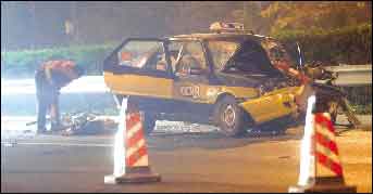 工人們正在封閉區(qū)域內(nèi)作業(yè)時(shí),慘劇突然發(fā)生。一名工人說(shuō),突然,一輛出租車穿越他們?cè)O(shè)置的路障,重重地撞到小貨車上。