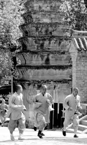 早來的游人們先是驚奇地看著這些穿著長袍短褂的孩子,接著便爭先恐后與他們合影,幾個害羞的小沙彌紛紛躲在了大哥哥身后。他們這是出來配合一個機(jī)構(gòu)拍攝專題片的,隨著少林寺名聲的與日俱增,少林寺的武僧又有了新的江湖。