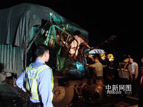 中新網(wǎng)韶關(guān)5月9日電(馮昶 李凌 鄭忠輝 林相來(lái)) 5月8日深夜,京珠高速公路廣東韶關(guān)境內(nèi)距翁城出口一公里處發(fā)生交通意外,一輛湖南號(hào)牌大貨車追尾撞向一輛廣東號(hào)牌大貨車,造成3人受傷被困。